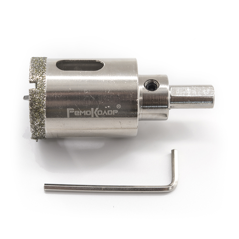 Коронка алмазная по стеклу и керамограниту с центрирующим сверлом РемоКолор служит для сверления отверстий в керамограните, керамике, стекле. При работе с твердыми породами рекомендуется использовать для начала работы сверло меньшего диаметра.Запрещено работать в ударном режиме и без охлаждения водой. Необходимо ограничивать частоту оборотов во избежание перегрева коронки.Коронка изготовлена из инструментальной стали и агломерированных синтетических алмазов.