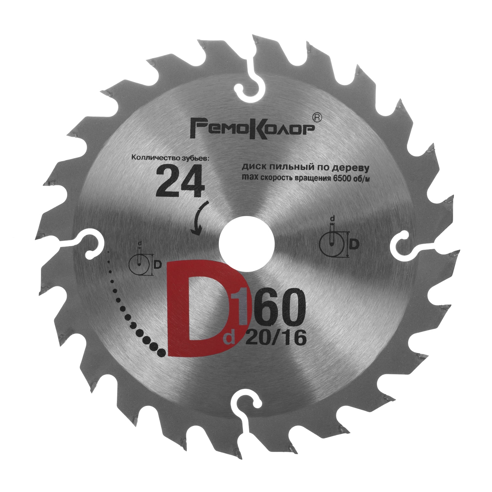 Пильный диск по дереву торговой марки Ремоколор предназначен для распиловки заготовок из мягких и твердых пород древесины, фанеры, ДСП. Изготовлен пильный диск из пружинной стали марки 65MN. Форма зуба (ATB) с положительным углом наклона обеспечивает эффективную распиловку крупных заготовок. Режущие пластины изготовлены из твердого сплава и обладают исключительной стойкостью к окислению, истиранию и разрушению. Пайка пластины к диску осуществляется припоем с высоким содержанием серебра, гарантируя тем самым высокую надежность крепления.