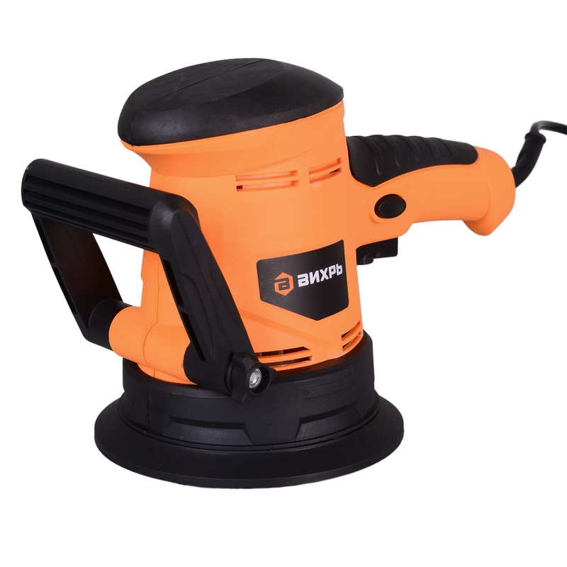 Эксцентриковая шлифовальная машина Вихрь ЭШМ-125Э мощностью 450 Вт с регулировкой оборотов, пылесборником, дополнительной ручкой будет полезна при проведении грубого и деликатного шлифования, полировки, межслойной обработки покрытий.Устройство упростит обработку профильных, объемных, криволинейных поверхностей большой площади. Шлифовальная подошва диаметром 125 мм вращается по орбите и одновременно крутится вокруг своей оси. Такое комбинированное вращение позволяет добиться высокого качества шлифования практически без погрешностей. Круги разной зернистости легко фиксируются на подошве благодаря наличию липучки. Регулировка оборотов позволяет выбрать оптимальный режим (4000-13000 об/мин). Скорость вращения можно регулировать силой нажатия на клавишу выключателя, что дает возможность более тонкой настройки режима работы. Шлифмашина весит 2,1 кг. Для удобства использования корпус оснащен двумя ручками: основная расположена в непосредственной близости от выключателя, дополнительная может менять угол наклона для п