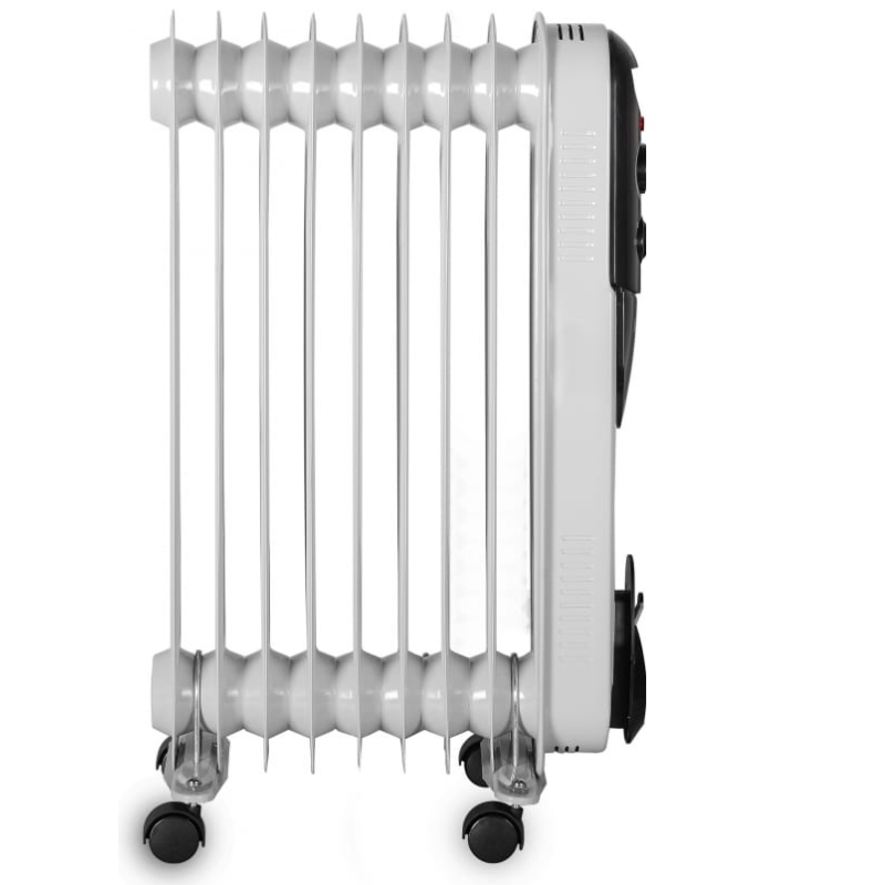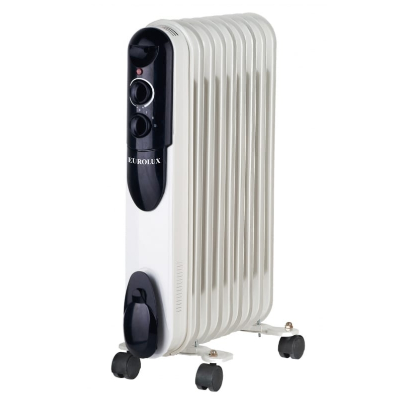 Масляный радиатор Eurolux ОМПТ-EU-9H – это высокоэффективный отопительный прибор. Главная его конструктивная особенность заключается в том, что нагревательный элемент подогревает масло. Благодаря этому, корпус не нагревается до больших температур, поэтому не выжигает кислород и не сушит воздух. Поскольку обогреватель комплектуется нагревательным элементом мощностью 2000 Вт, подходит для помещений площадью до 25 м². Благодаря высокой мощности, прибор позволяет за короткий промежуток времени повысить температуру воздуха до необходимых значений. Масляный радиатор на 9 секций имеет 3 режима работы: 800/1200/2000 Вт. Заданную температуру он поддерживает автоматически за счет встроенного термостата.