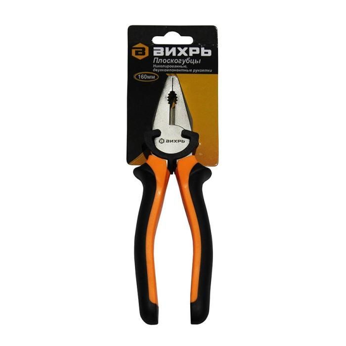 Плоскогубцы (пассатижи), 160мм., никелированные, двухкомпонентные рукоятки, Вихрь. предназначены для широкого спектра монтажных и ремонтных работ. Покрыты никелем, что защищает от коррозии и снижает износ при эксплуатации. Имеют удобные двухкомпонентные рукоятки.