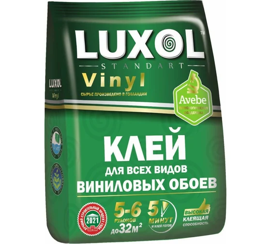 Обойный клей для всех видов виниловых обоев. Изготовлен из голландского сырья — настоящее европейское качество по доступной цене. Обладает высокой клеящей способностью; время приготовления 5 минут; растворим в холодной воде; противогрибковое свойство; не оставляет следов и пятен; экологичный продукт. ОБЛАСТЬ ПРИМЕНЕНИЯ Клей обойный «LUXOL ВИНИЛ» предназначен для наклеивания всех видов виниловых обоев внутри жилых, административных, общественных и производственных помещений на бетонные, гипсокартонные, оштукатуренные и другие поверхности с аналогичной основой, а также для предварительной обработки поверхности под оклейку.