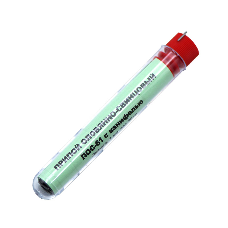 Припой с канифолью REXANT представляет собой проволоку (диаметром 1 мм) из сплава олова (60 %) и свинца (40 %). Используется в пайке для соединения деталей между собой и позволяет создать герметичный, механически прочный (устойчивый) шов. Нагреваясь до температуры плавления (183...188 °C) припой: расплавляется, смачивает спаиваемый металл и, растекаясь по нему — заполняет место между соединяемыми деталями.В свою очередь флюс канифольный активный (MC-20A) помогает сделать паянное соединение более прочным! Убирая окислительную плёнку со спаиваемых поверхностей и защищая их от дальнейшего окисления при пайке.
