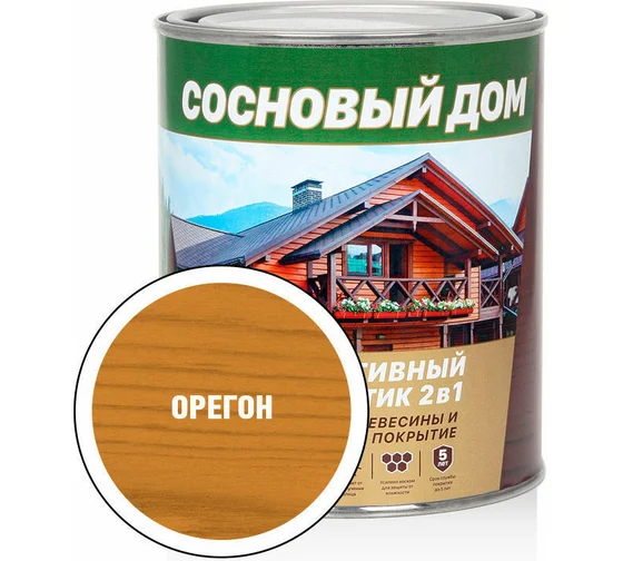 Декоративно-защитный состав для древесины ЗАО Декарт Сосновый дом орегон предназначен для экономичной финишной отделки поверхности пиленой и строганой древесины снаружи и внутри помещений. Образует полуматовое покрытие. Преимущества: - Для наружных и внутренних работ - Наносится на поверхность строганой и пиленой древесины - Образует полуматовое покрытие - Сохраняет видимой текстуру и подчеркивает рисунок натуральной древесины - Защищает древесину от воздействия УФ-излучения и атмосферной влаги - Предохраняет от воздействия влажности, грибков, гнили, плесени, синевы, насекомых-древоточцев