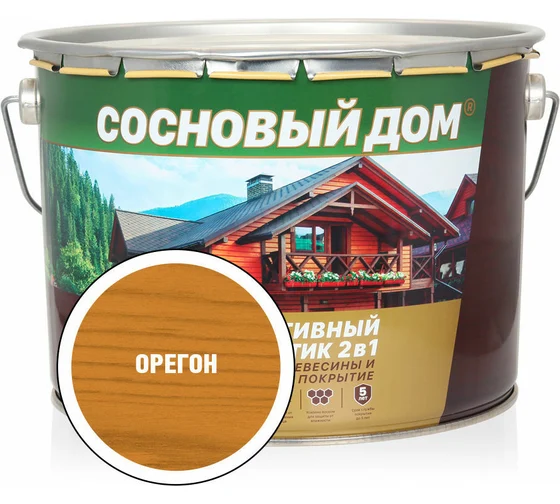 Декоративно-защитный состав для древесины ЗАО Декарт Сосновый дом орегон предназначен для экономичной финишной отделки поверхности пиленой и строганой древесины снаружи и внутри помещений. Образует полуматовое покрытие. Преимущества: - Для наружных и внутренних работ - Наносится на поверхность строганой и пиленой древесины - Образует полуматовое покрытие - Сохраняет видимой текстуру и подчеркивает рисунок натуральной древесины - Защищает древесину от воздействия УФ-излучения и атмосферной влаги - Предохраняет от воздействия влажности, грибков, гнили, плесени, синевы, насекомых-древоточцев