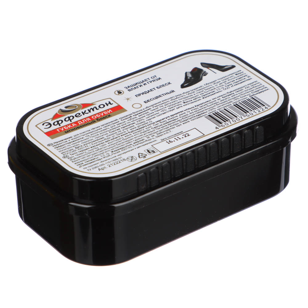 Губка от торговой марки «Эффектон» придаст обуви блеск, эластичность и обновит цвет кожи. Средство обеспечивает защиту от вредного воздействия влаги и соли, предохраняет от трещин и старения, защищает от загрязнения.