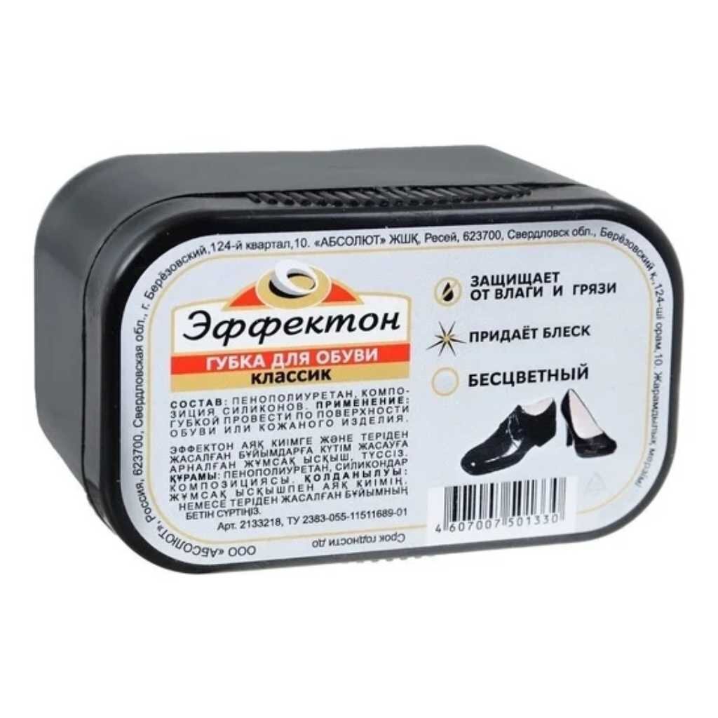 Губка от торговой марки «Эффектон» придаст обуви блеск, эластичность и обновит цвет кожи. Средство обеспечивает защиту от вредного воздействия влаги и соли, предохраняет от трещин и старения, защищает от загрязнения.