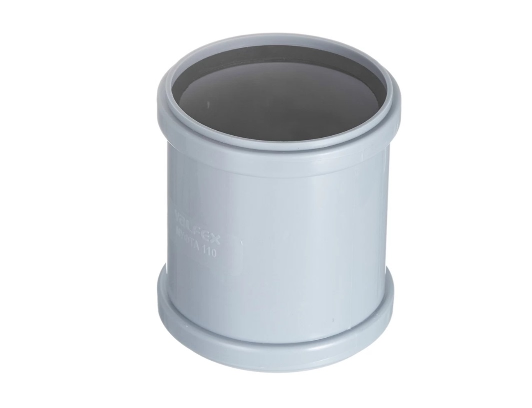 Муфта двухраструбная предназначена для соединения полипропиленовых канализационных труб системы внутренней канализации одного диаметра, не имеющих раструбов, или в случае ремонта трубопровода. Герметичность соединения обеспечивается резиновыми однолепестковыми кольцами установленными в раструб муфты.