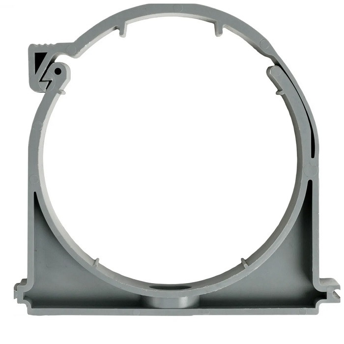 Хомут с защелкой для внутренней канализации — изделие для крепления канализационных труб, монтируется к стене с помощью дюбеля и шурупа. Применяется для систем хозяйственно-бытовой канализации в жилых, административных и промышленных зданиях, а также для систем внутренних водостоков для зданий высотой до 10 метров.