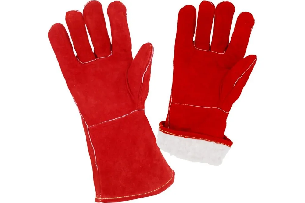 Утепленные краги сварщика, спилковые, пятипалые предназначены для максимальной защиты от механических повреждений, а также от капель расплавленного металла. Изготовлены из расщепленной телячьей кожи (спилок BC 0,8-1,0 мм). Имеют дополнительный утепленный слой из искусственного меха. Дополнительная защита запястных артерий.