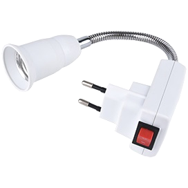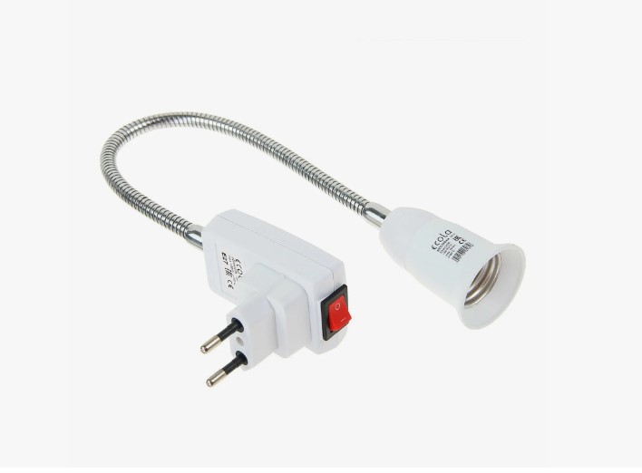 Переходник подходит для подключения настольных ламп или других светильников, которые часто используют, но хотят быстро выключать, не вставая с места. Это функциональный аксессуар для подключения устройства с разъёмом E27 в розетку с вилкой.