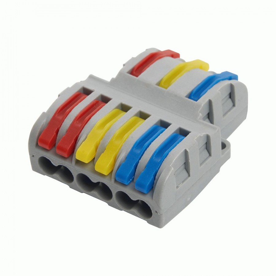 LD222-427/428 – клеммы с 3 отдельными вводами, которые имеют от 2 до 3 выводов на каждую линию, предназначены для удобного и безопасного разветвления имеющихся линий. Все клеммы имеют рычажную конструкцию, в них применяется пружинное соединение, что обеспечивает надежность контакта как одножильных, так и многожильных медных проводников с широким диапазоном сечений. Клеммы отличаются высоким качеством материалов и достойно конкурируют с европейскими производителями, уже зарекомендовавшими себя на рынке электромонтажных соединителей.