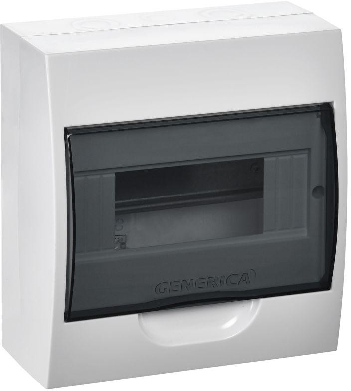 Бокс GENERICA ЩРН-П-8 модулей, навесной, пластик IP41 MKP12-N-08-41-G используется в осветительных сетях для установки модульных устройств: автоматических выключателей, устройств защитного отключения, дифференциальных автоматических выключателей, таймеров, устройств управления освещением и т.д. Надежная современная конструкция и прочный пластик, удобные крепежные приспособления гарантируют изделию долгий срок службы и безопасность эксплуатации.