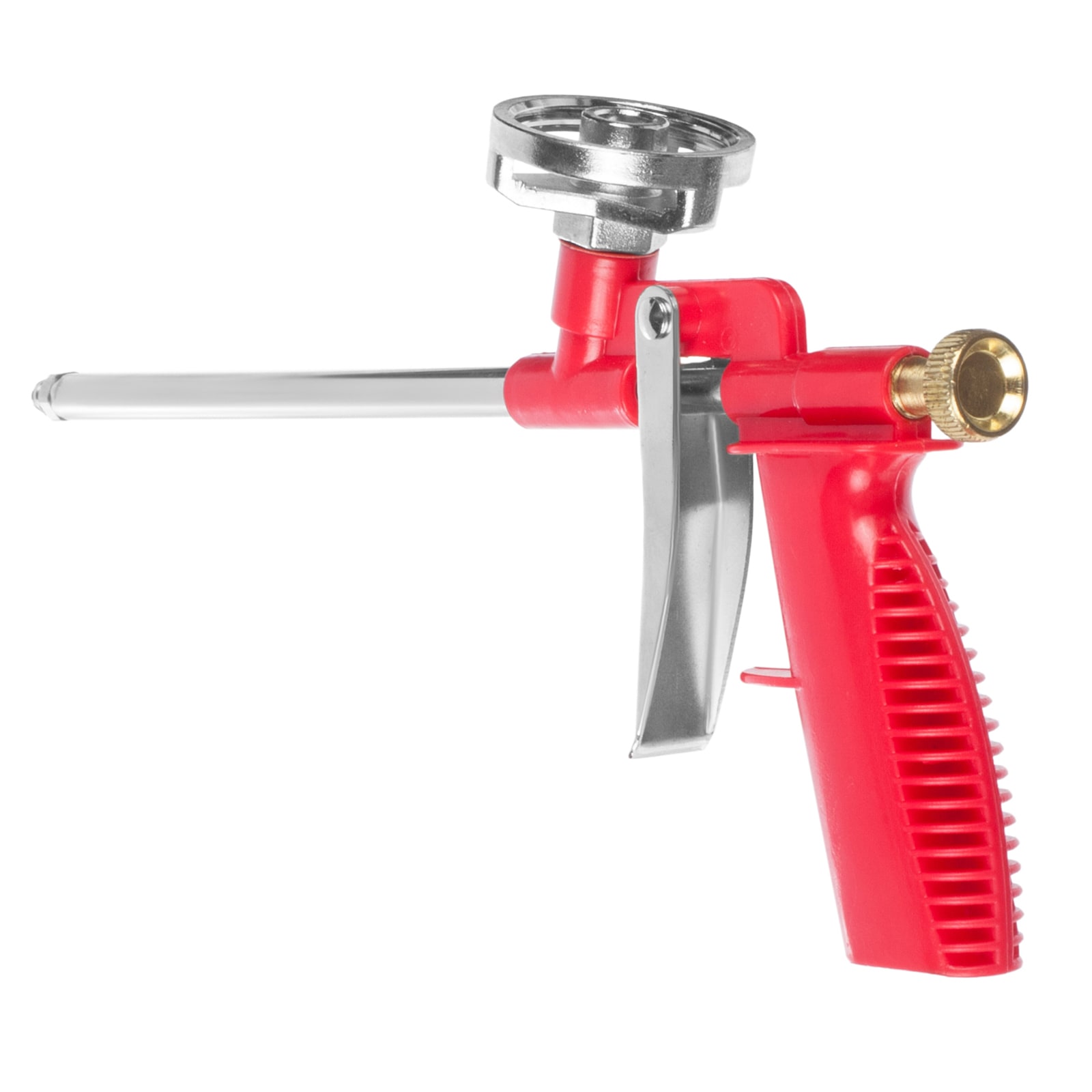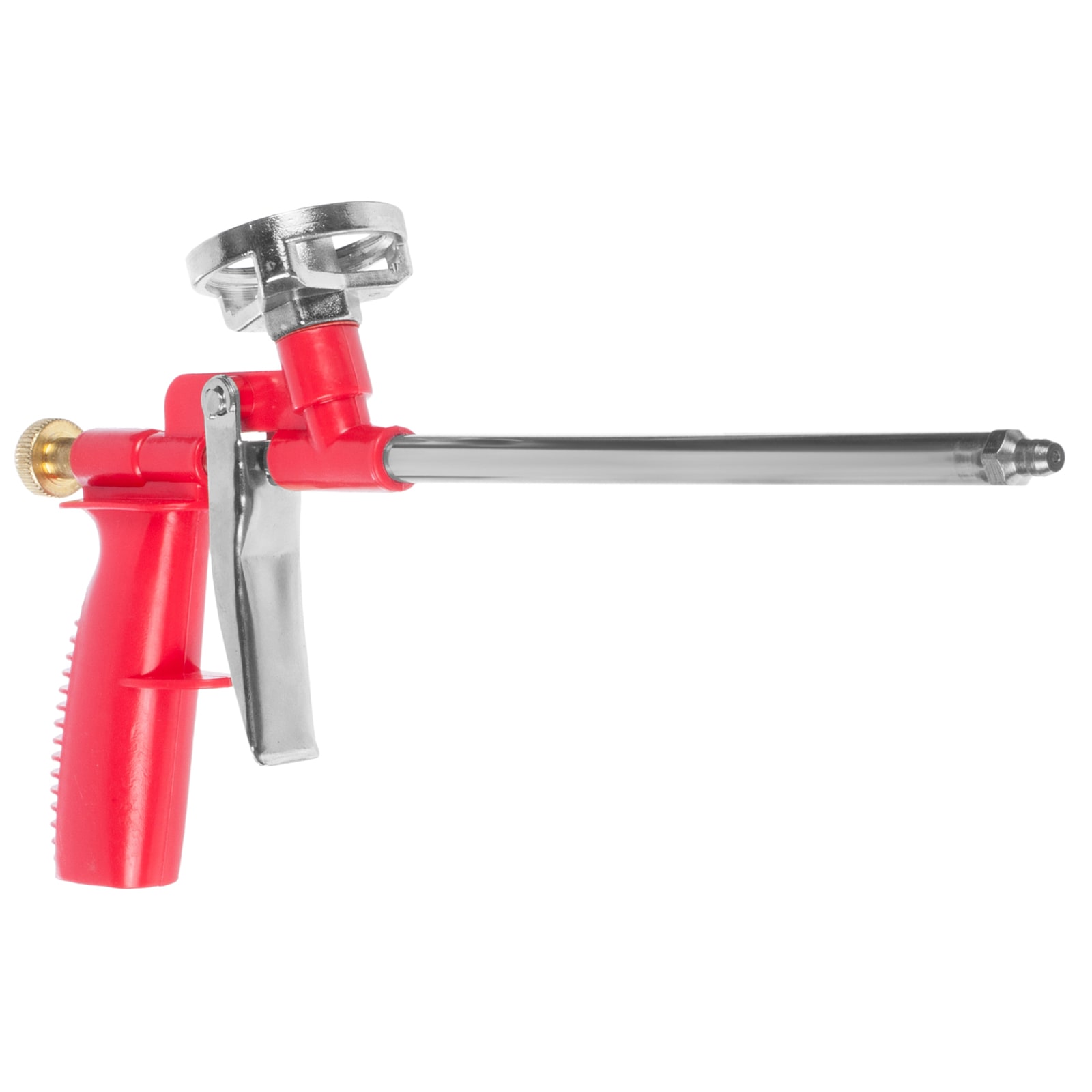 Пистолет для монтажной пены, пластиковый корпус, рукоятка и регулировочный винт, алюминиевый адаптер. Используется для нанесения монтажной пены в полости, пустоты и отверстия при проведении ремонтных работ, а также при установке окон, дверей, крыш, различных элементов строительных конструкций. Преимущества: облегченный корпус, точная дозировка пены, работа при низких температурах, высокая скорость и точность работы, низкий расход монтажной пены. Комплектация: пистолет, 2 насадки, 2 пластиковых удлинителя.