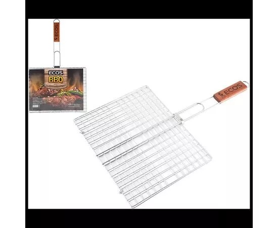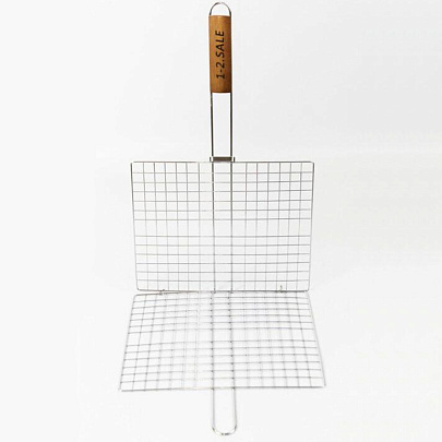 Размер: 31x24x1.5см, общая длина: 50см Толщина прутьев: 3.5мм, 2.5мм, 1.5мм Материалы: решетка - хромированная сталь, деревянная ручка Решетка для барбекю поможет легко приготовить вкуснейшие блюда на открытом огне. Удобная деревянная ручка не нагревается при использовании и не скользит в руках. Благодаря тому, что решетка переворачивает все содержимое одним движением, значительно экономится время при готовке. Удобный зажим прочно закрепит продукты на решетке, будь то мясо, овощи или рыба.