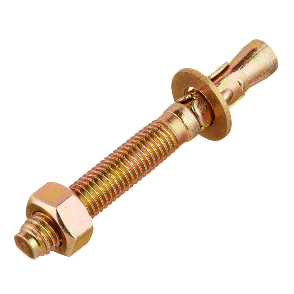 в необходимом месте, буром или сверлом по бетону, сверлят отверстие нужного диаметра и требуемой глубины; отверстие очищают от пыли обломков камня; монтируемую деталь прикладывают к камню, и совмещают отверстия; обычным молотком вбивают клиновой анкер в совмещенные отверстия так, чтобы резьбовая сторона осталась снаружи; на резьбовую часть надевают шайбу и накручивают гайку.