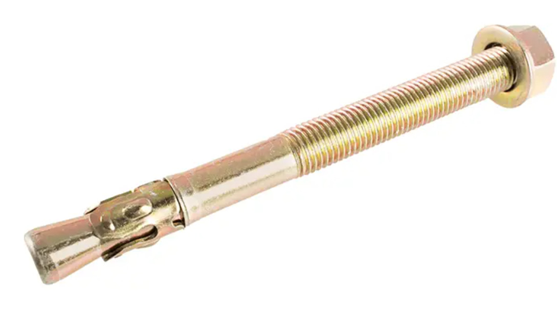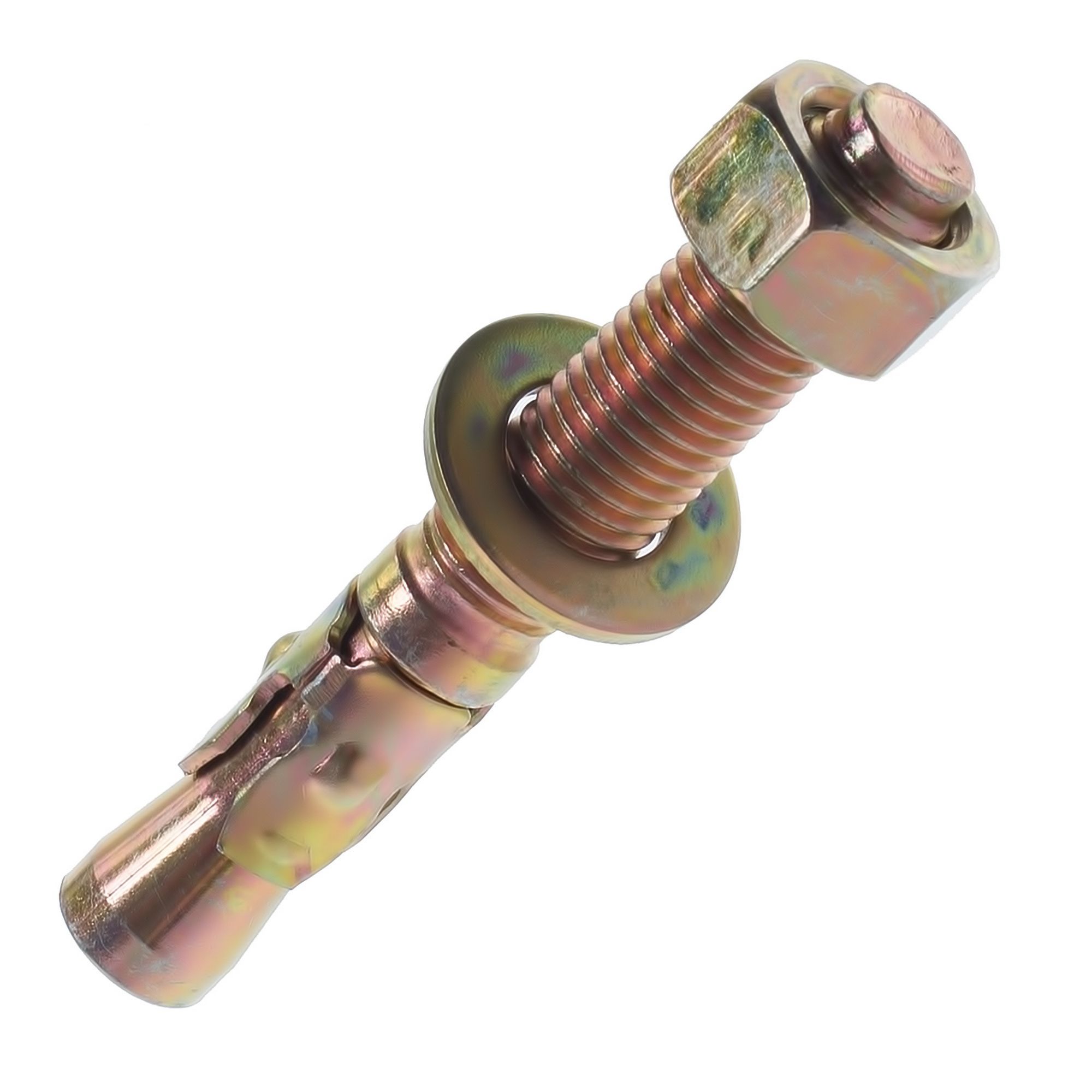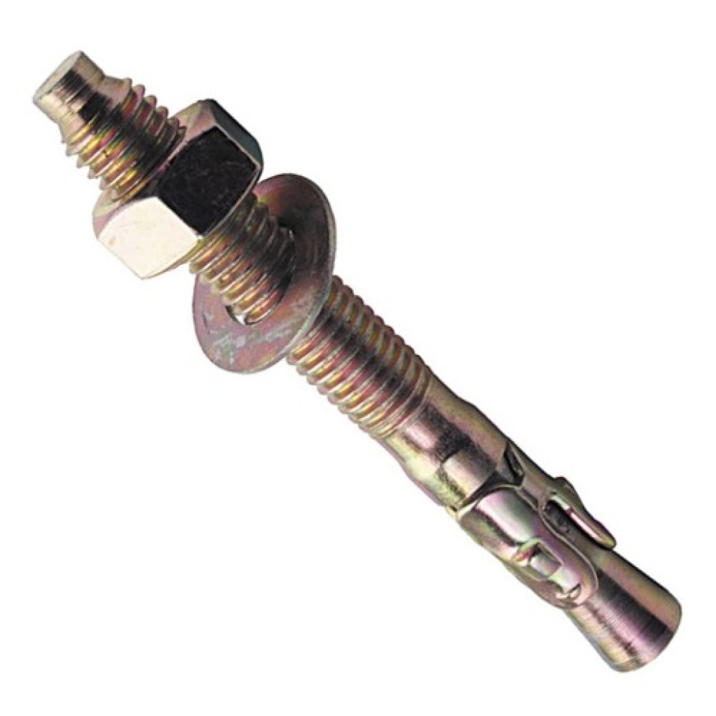 в необходимом месте, буром или сверлом по бетону, сверлят отверстие нужного диаметра и требуемой глубины; отверстие очищают от пыли обломков камня; монтируемую деталь прикладывают к камню, и совмещают отверстия; обычным молотком вбивают клиновой анкер в совмещенные отверстия так, чтобы резьбовая сторона осталась снаружи; на резьбовую часть надевают шайбу и накручивают гайку.