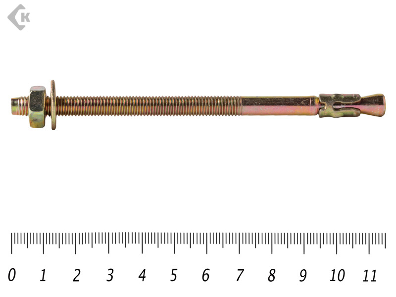 Предназначен для крепления уголков, реек, подвесных потолков. Выполнен в виде шпильки со шляпкой, разделен на две части продольно. В нижней части присутствует утолщение, за счет которого крепеж расклинивается в основании и формирует максимально прочный узел.