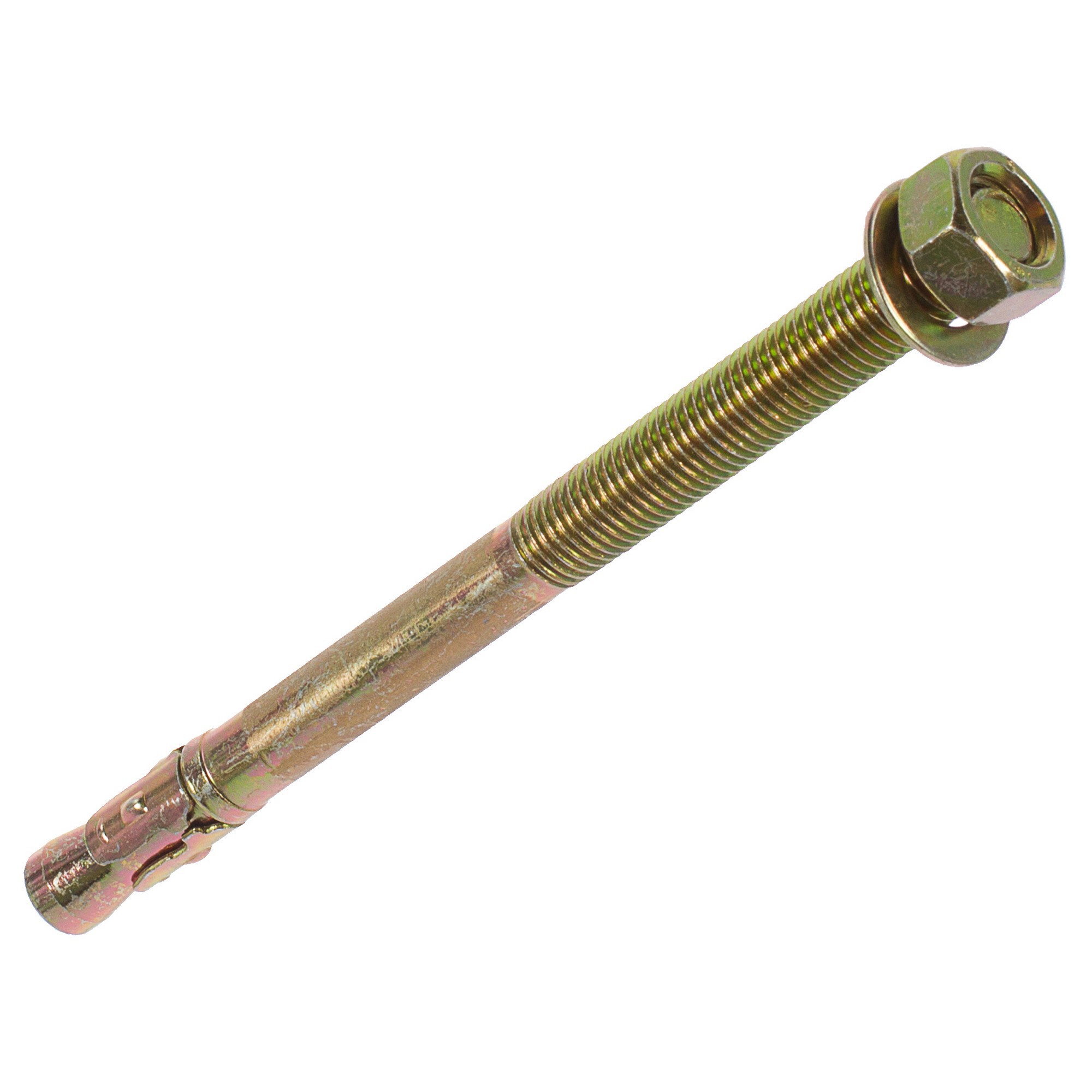 в необходимом месте, буром или сверлом по бетону, сверлят отверстие нужного диаметра и требуемой глубины; отверстие очищают от пыли обломков камня; монтируемую деталь прикладывают к камню, и совмещают отверстия; обычным молотком вбивают клиновой анкер в совмещенные отверстия так, чтобы резьбовая сторона осталась снаружи; на резьбовую часть надевают шайбу и накручивают гайку.
