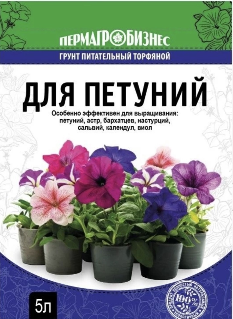 Грунт питательный для Петуний. Массовая доля питательных веществ, мг/100 г: азот общий - 85-110, общий фосфор - 60-80, калий - 65-90 мг/кг.