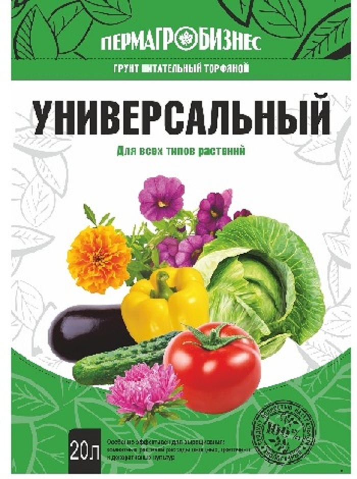 «Пермагробизнес» грунт Универсальный, фасовка 20 л — полностью готовый питательный грунт.