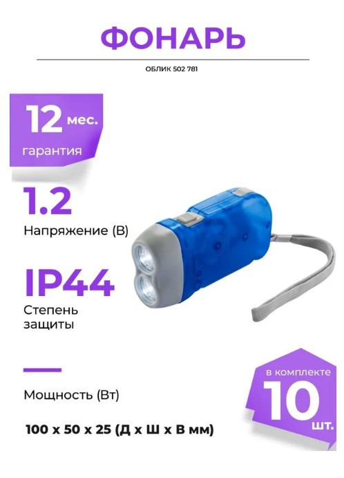 Фонарь ручной «Облик» 502 (э/динамический+акк.) 2св/д, голубой+серый/пластик, 2 режима предназначен для освещения в экстренных случаях. Характеристики: Источник света: 2 светодиода с увеличительной линзой. Тип питания: динамо-машина, аккумулятор. Материал корпуса: пластик. Режимы работы: 1) на встроенном аккумуляторе, 2) в динамическом режиме. Особенности: не нуждается в дополнительных источниках питания, питание фонаря осуществляется по принципу преобразования механической энергии в электрическую. Гарантия: 12 месяцев.