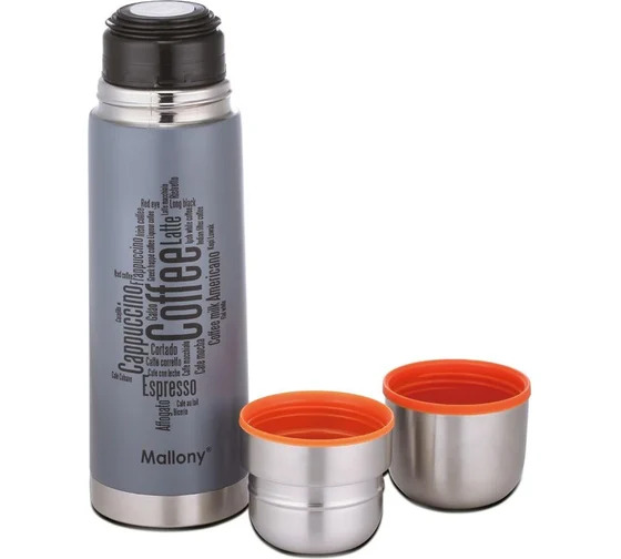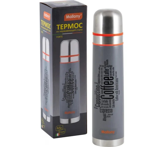 Термос из нержавеющей стали Mallony FORTE 0.5 л. 003694 имеет герметичную клапан с кнопкой, что удобно при наливании напитков без отворачивании крышки. Две чашки позволяют использовать термос в походных условиях. Колба из нержавеющей стали устойчива к деформации и коррозии, поэтому гарантирует долгий срок службы.