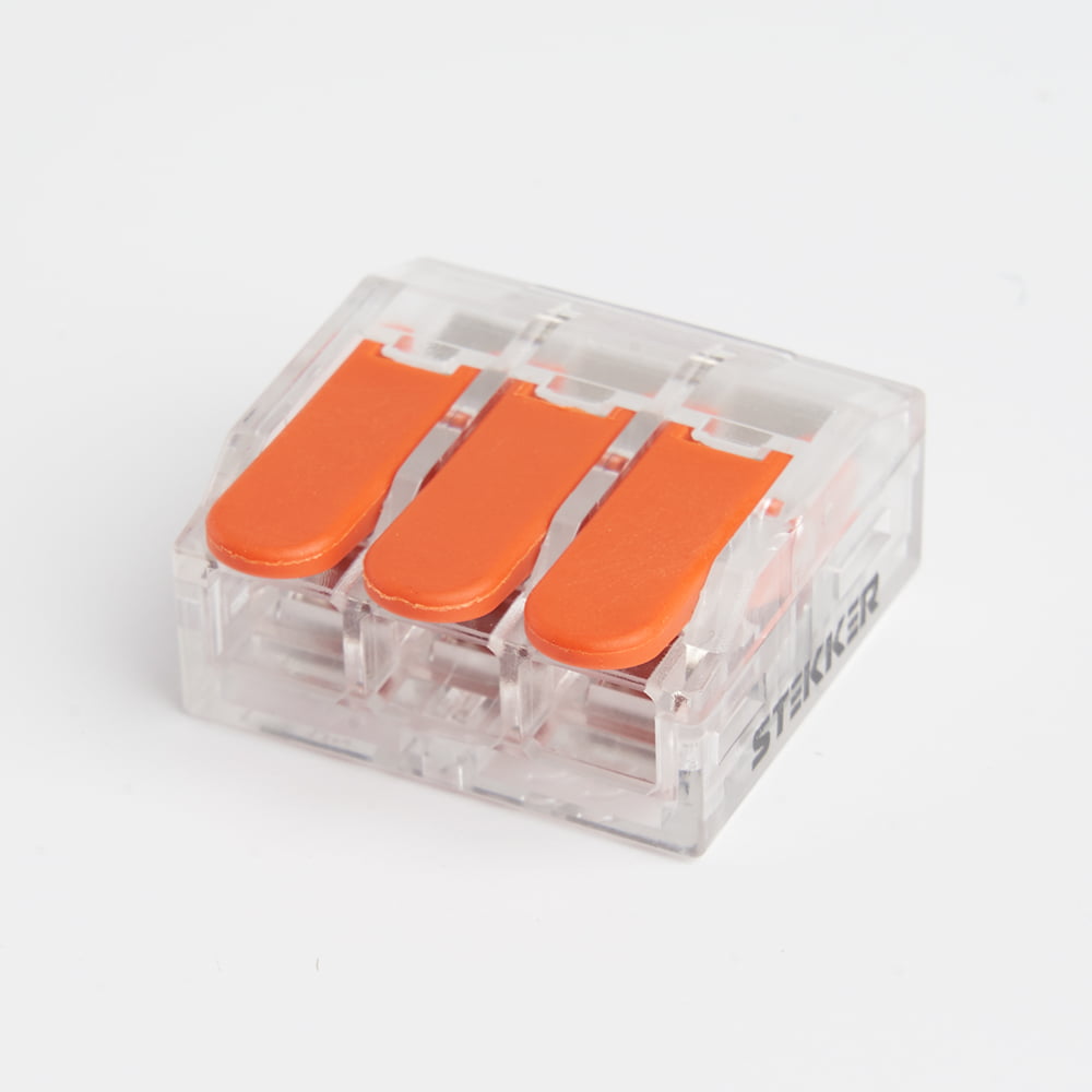 Клемма пружинная универсальная компактная STEKKER LD221-613, 3-проводная 0,5-6 мм2, 450В, 41А, без пасты, материал изделия пластик, медь. Тип провода одножильный/многожильный, материал провода медь, температура окружающей среды -20...+40°C