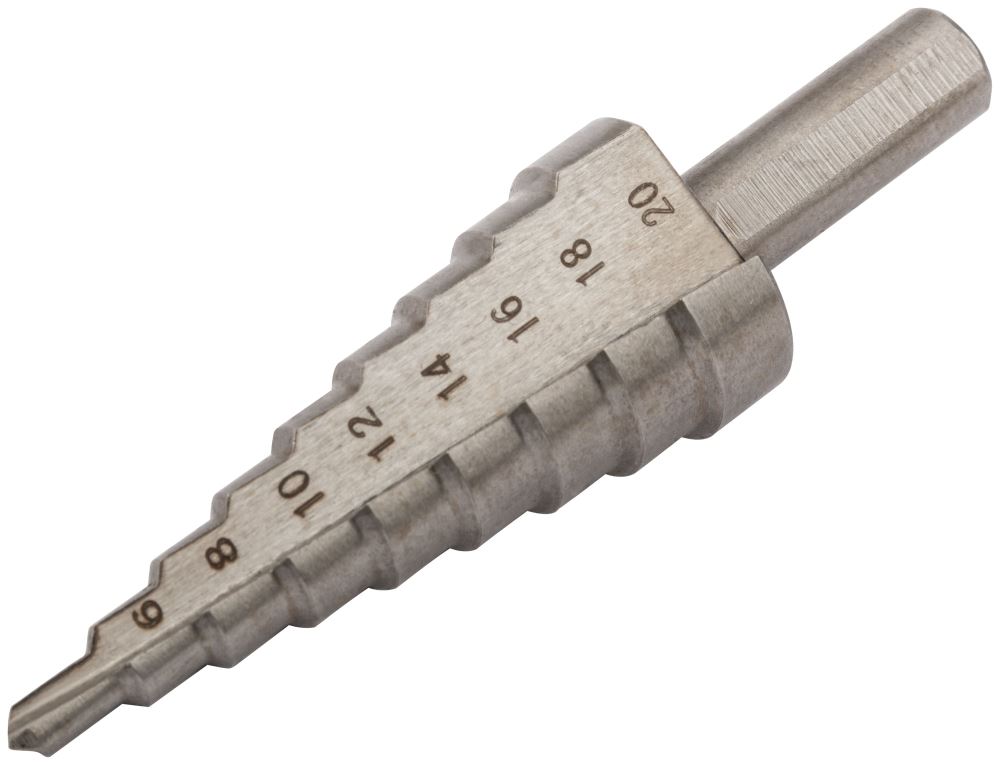 Ступенчатое сверло FIT IT предназначено для сверления и рассверливания отверстий в листовых материалах (сталь, цветные металлы, пластик). Сверло изготовлено из полированной быстрорежущей (HSS) стали Р6М5, что обеспечивает его долговечность и надежность в использовании. Сверла обладают высокой термостойкостью и износоустойчивостью, что гарантирует им увеличенный ресурс. Конструкция сверла обеспечивает улучшенный отвод отходов сверления.