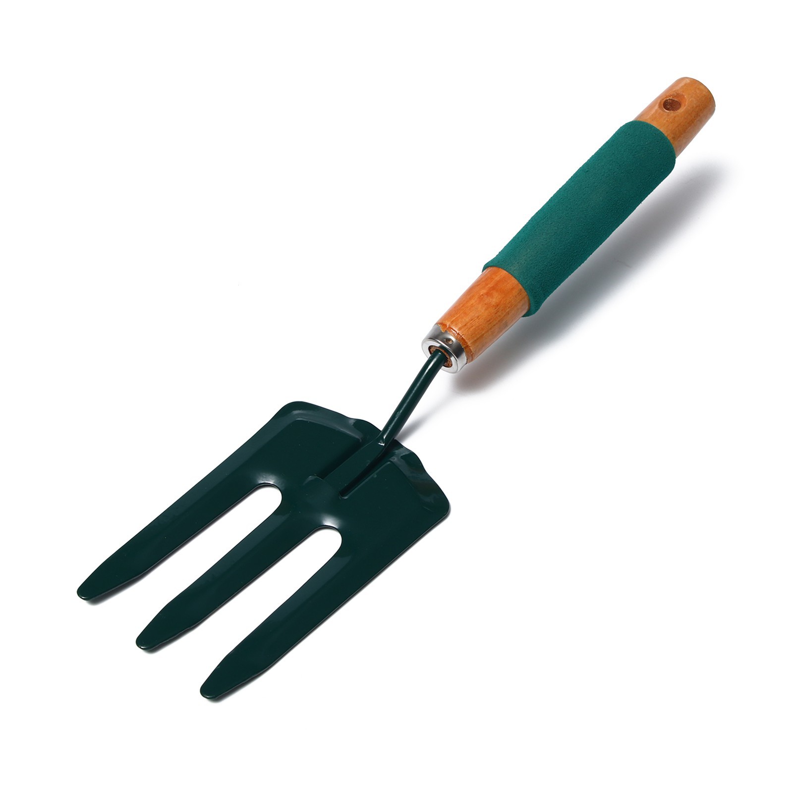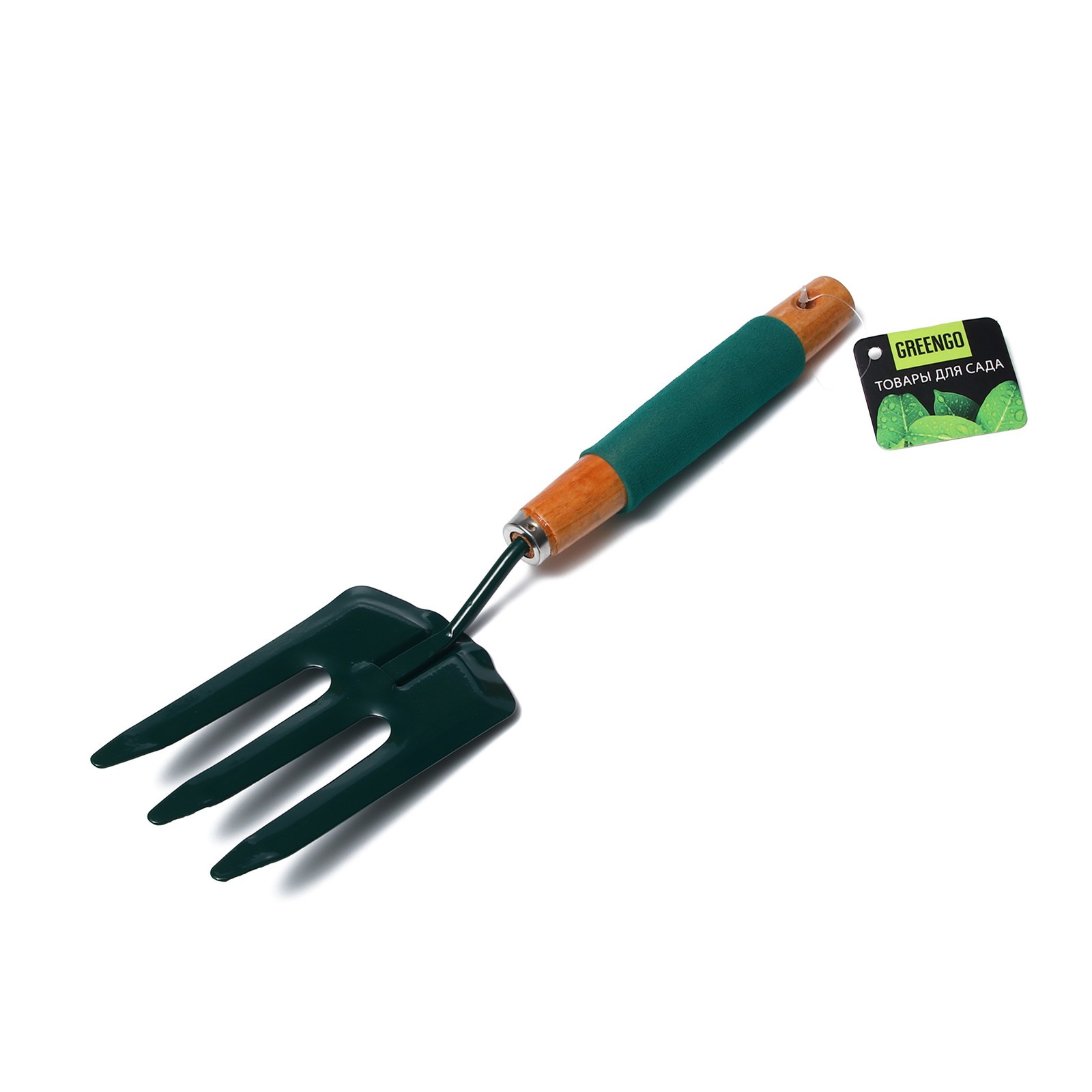 Садовая вилка Greengo с деревянной поролоновой ручкой предназначена для высадки растений, аэрации почвы, прополки и удаления сорняков на садовом участке. Широкие зубья вилки безопасны для корней растений. материал: металл, дерево, поролон; габариты: 27 × 8 × 5 см; вес: 130 г.