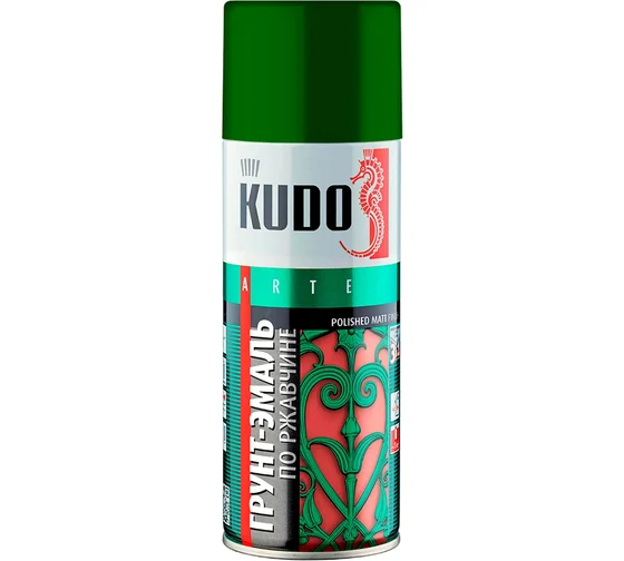 Грунт-эмаль аэрозоль по ржавчине KUDO предназначена для окрашивания изделий из сплавов чёрных металлов, которые подвержены коррозии и уже заржавели. Продукт сочетает в себе свойства нейтрализатора коррозии, грунта и декоративной эмали, что позволяет значительно сократить время для получения покрытия.
