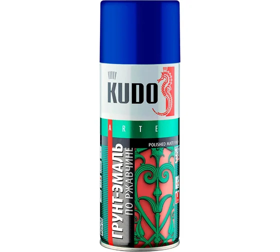 Грунт-эмаль аэрозоль по ржавчине KUDO предназначена для окрашивания изделий из сплавов чёрных металлов, которые подвержены коррозии и уже заржавели. Продукт сочетает в себе свойства нейтрализатора коррозии, грунта и декоративной эмали, что позволяет значительно сократить время для получения покрытия.