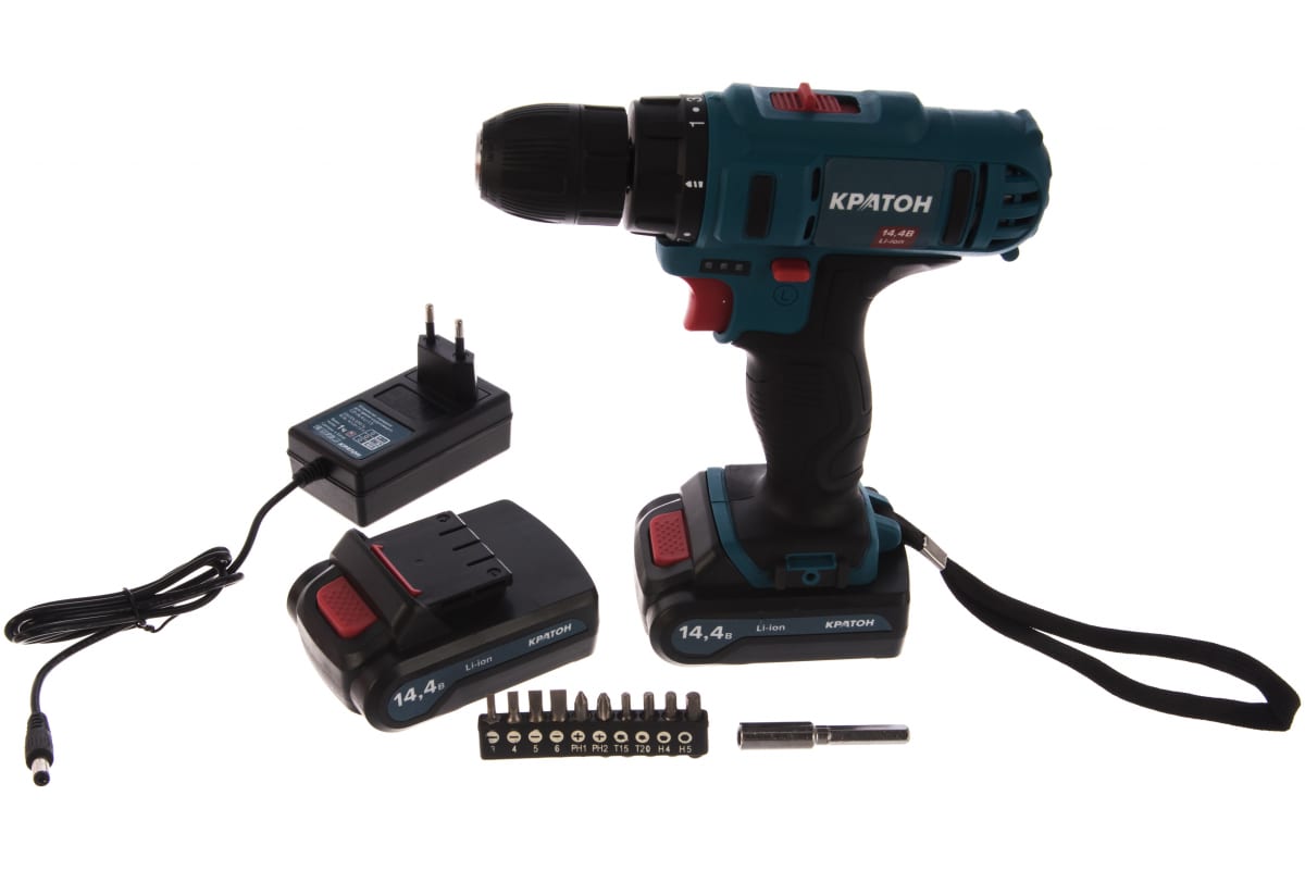 Дрель-шуруповерт, Зарядное устройство, 2 Аккумулятора, Сверло, Магнитный держатель бит 60 мм, Биты (насадки отверточные), Скоба, Винт М3×10, Гайка М3, Кейс
