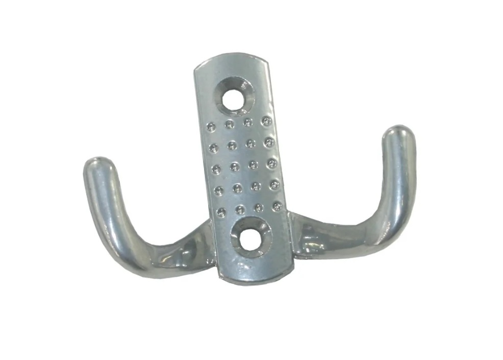 Крючок-вешалка двухрожковый. Материал - алюминиевый сплав. Крепеж в комплекте.