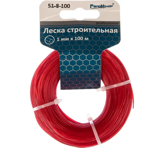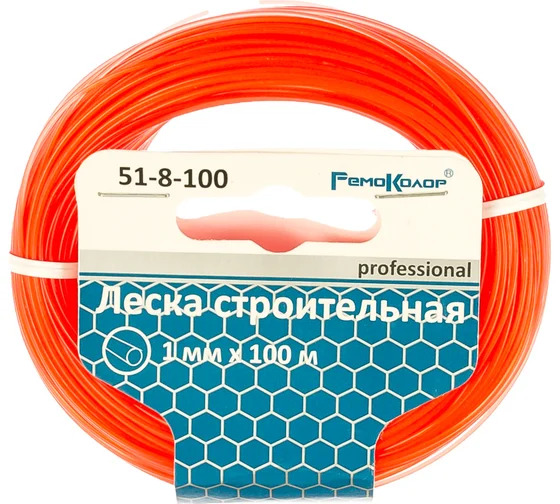 Леска строительная, диаметр 1,0 мм, длина 100 м РемоКолор 51-8-100 используется в строительстве, быту, а также в качестве снасти для рыболовов.