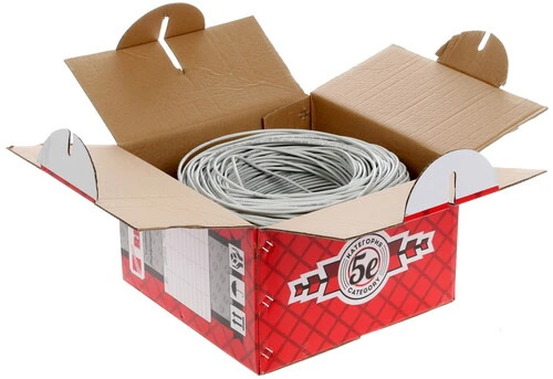 Кабель UTP 2х2х0.5 305 м kat.5е REXANT. Важнейшим элементом в локальных сетях является кабель. «Витая пара» или информационный кабель является проводником передачи цифровых данных в телекоммуникациях, компьютерных сетях и других областях, таких как телефония. Кабель UTP 2x2x0.5 кат. 5е Rexant 305 м – это четыре медных провода, попарно скрученных между собой, с различным шагом скрутки. Такой способ скрутки помогает избежать дополнительных электромагнитных помех. Каждая из 4 жил изолирована оболочкой из ПВХ. Для идентификации каждая оболочка имеет определённый цвет, а толщина центральной жилы составляет 0.5мм. Внешняя оболочка кабеля также полностью состоит из ПВХ серого цвета. Кабель обеспечивает передачу данных на скорости до 100 Мбит/с, при использовании двух пар проводов, а категория cat5e обеспечивает стабильную передачу данных в полосе частот 125Мгц. Многие спрашивают, почему бухта имеет такую необычную длину - 305 метров. Это связано с тем, что стандарты устанавливались в США, где другие меры измерения длины, и если перевести 305 метров на американскую меру измерения, то это будет ровняться 1000 футов. Как правило, кабель применяется при прокладке телефонных и компьютерных сетей. Магистрали кабеля прокладываются как в помещениях, так и в кабельных канализациях. Аббревиатура UTP в названии подразумевает, что провод не имеет экранированной защиты, однако это не влияет на качество работы данного кабеля. Благодаря низкой себестоимости, данный кабель является одним из лидеров на рынке кабельной продукции.