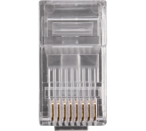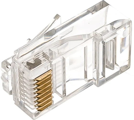 Разъем RJ-45 (8P8C) PROconnect категории 5е под витую пару предназначен для соединения телекоммуникационного оборудования (компьютеров, офисных АТС, маршрутизаторов, патч-панелей, сетевых карт) с другим оборудованием, имеющим гнездо разъема 8P8C. Размещается на конце компьютерных кабелей и соединяет их с розеткой, хабом, свитчом, сервером, роутером или другим компьютером. Изделие выполнено из прозрачного качественного пластика, имеет 8 посадочных мест и 8 ножей-контактов, которые покрыты слоем технического золота для повышения пропускной способности. Для опрессовки разъема на кабеле необходимо использовать специальный обжимной инструмент. При изготовлении продукции использованы надежные материалы, обеспечивающие высокий уровень передачи данных и долгий срок службы.