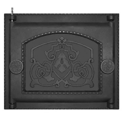 Крышка дверок может быть с чугунной вставкой, украшенной барельефным рисунком и с жаростойким стеклом ROBAX. Стекло выдерживает тепловые нагрузки до 760 градусов Цельсия. При этом можно любоваться пламенем и визуально контролировать процесс горения.
