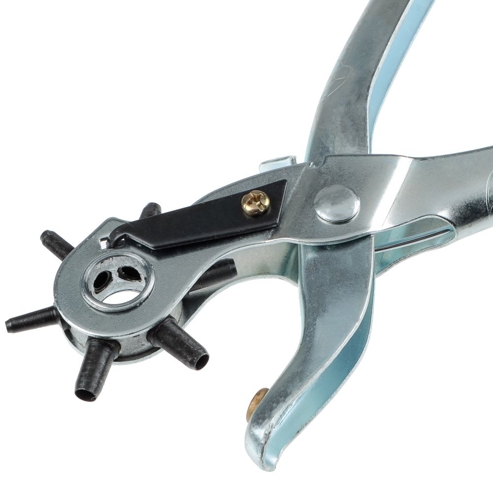 Дырокол РОКОТ на 6 отверстий, 210 мм 624-055 - незаменимый инструмент для пробивания отверстий в плотных материалах. Подходит для работы с картоном, тканью, резиной, кожей, пластиком и другими материалами. Имеет удобный крутящийся механизм смены насадок. Дырокол имеет широкую сферу применения: пригодится в быту, в швейном и кожевенном деле, в ремонте и рукоделии. Выполнен из углеродистой стали, прочный, выдерживает высокие нагрузки. Размер насадок: от 2 до 4,5 мм с шагом в 0,5 мм.