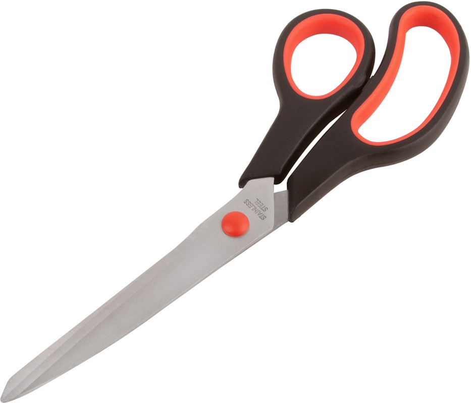 Ножницы бытовые, лезвие из нержавеющей стали, толщиной 2.0 мм, пластиковые ручки с мягкими вставками. Для бытовых целей и мелкого ремонта. Материал: нержавеющая сталь, пластиковые ручки с мягкими вставками.
