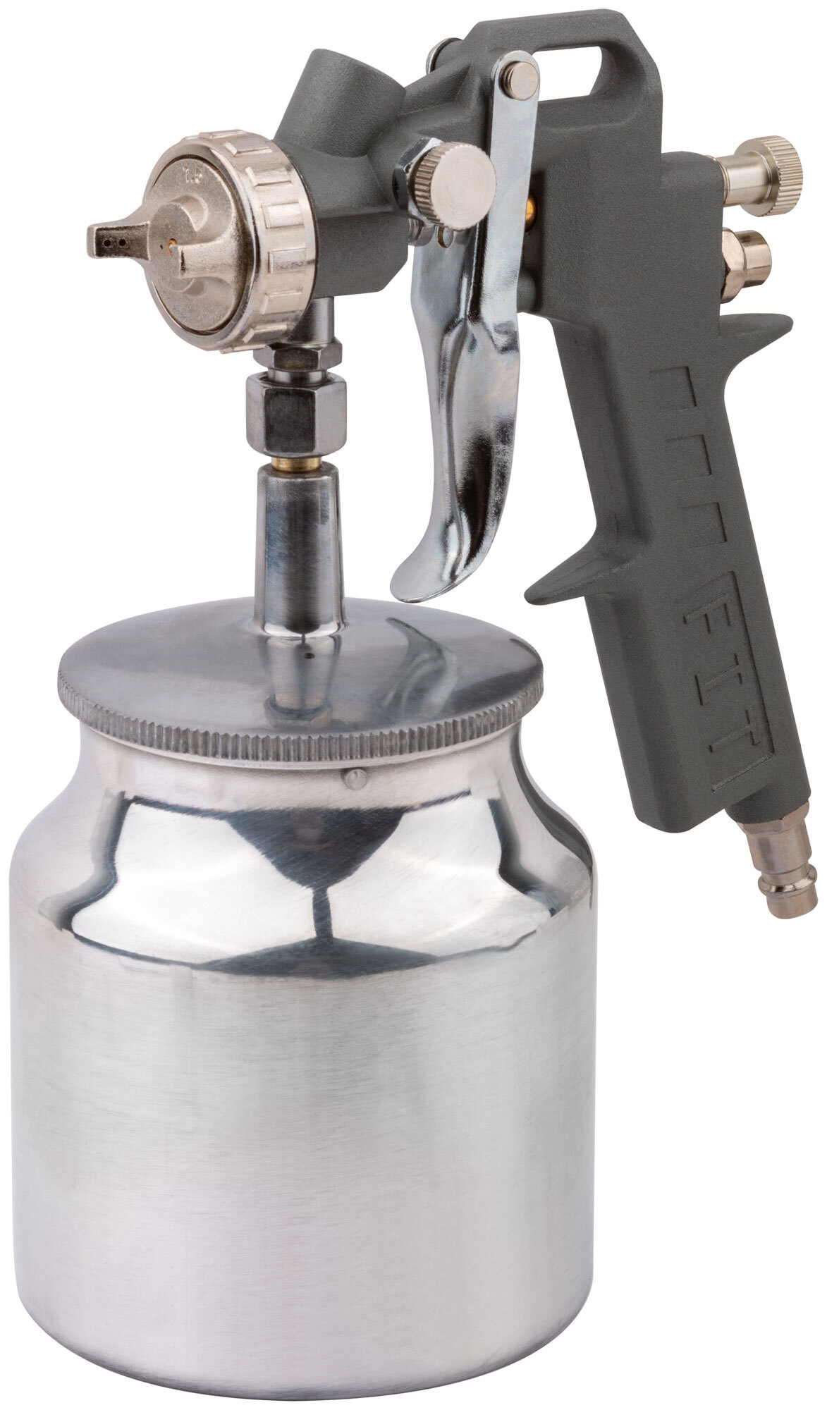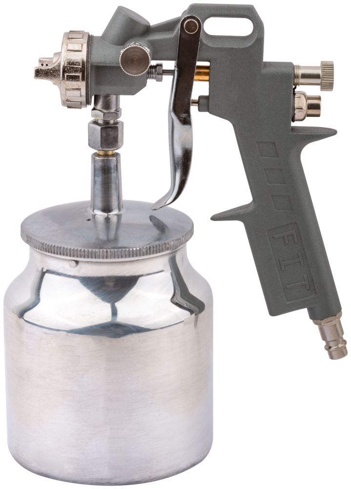 Пневматический краскопульт FIT DIY 81002 применяется при продолжительных покрасочных работах, потому что имеет бачок объемом 750 мл и не требует частого заливания краски. Выполнен из алюминия, устойчивого к коррозии и механическим повреждениям. Совместим с лаками, водоэмульсионными красками, синтетическими, полиуретановыми и эпоксидными эмалями, нитроэмалями и т.д.