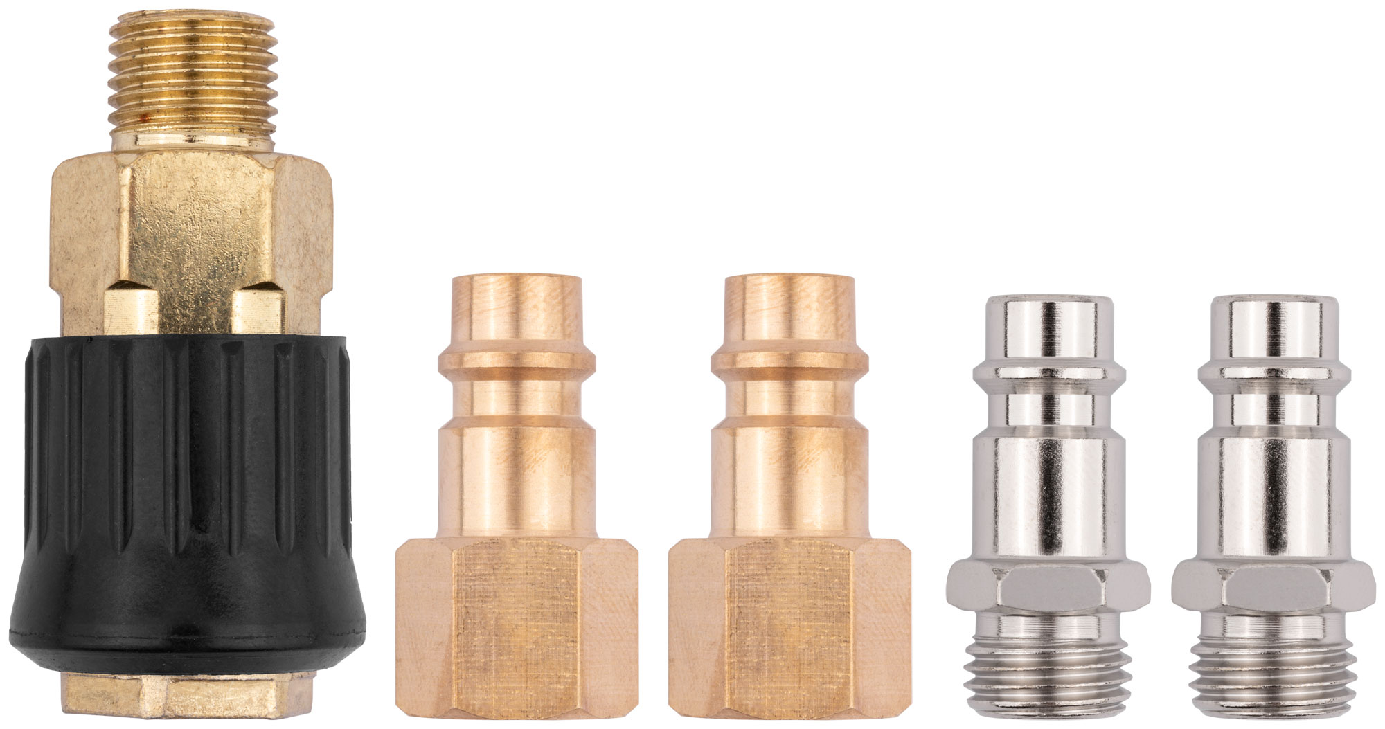Набор 2 ниппеля 'европейского' типа с наружной резьбой 1/4', шагом резьбы d1,5 мм, под ключ S-14.2 ниппеля 'европейского' типа с внутренне резьбойМ13, шагом резьбы D1,5 мм, под ключ S-16. 1 муфта с запорным клапаном 'универсального' типа, наружной резьбой 1/4', шагом резьбы D1,5 мм, под ключ S-19.Совместим с 81116, 81124, 81125, 81150, 81151, 81152,81153, 81154, 81155.