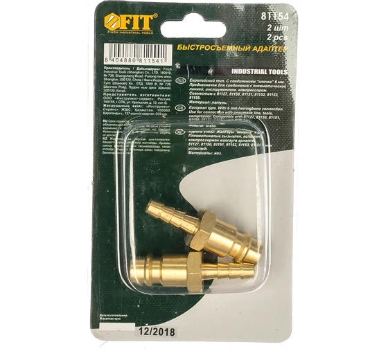 Адаптер быстросъемный FIT 81154 служит соединительным элементом выходного отверстия компрессора и шланга, к которому прикрепляется пневмоинструмент. В комплекте 2 штуки.