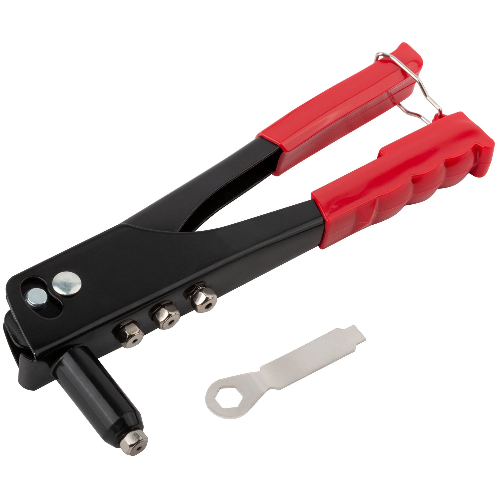 Заклепочник 240 мм 32000 прост и универсален в использовании. Незаменим для монтажа алюминиевых вытяжных заклепок. Изготовлен из прочных и качественных материалов, что гарантирует долгий срок службы. В комплекте четыре сменные насадки.