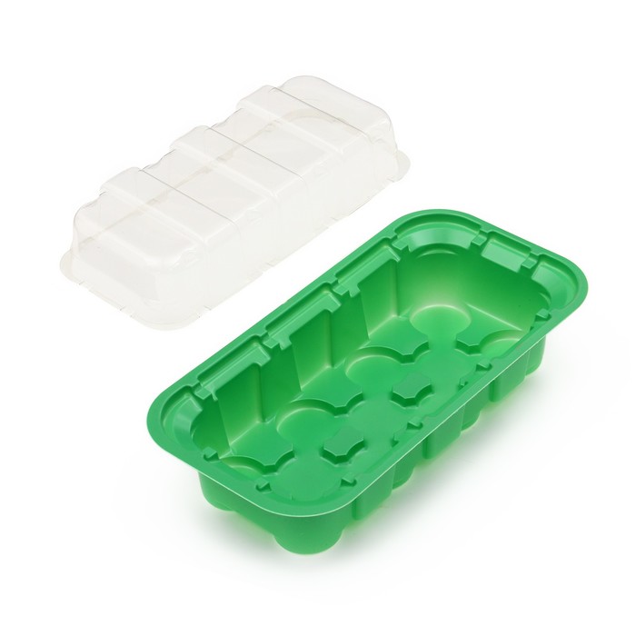 Благодаря прозрачной крышке создаёт парниковый эффект, тем самым сохраняет необходимую влажность и температуру для саженцев.