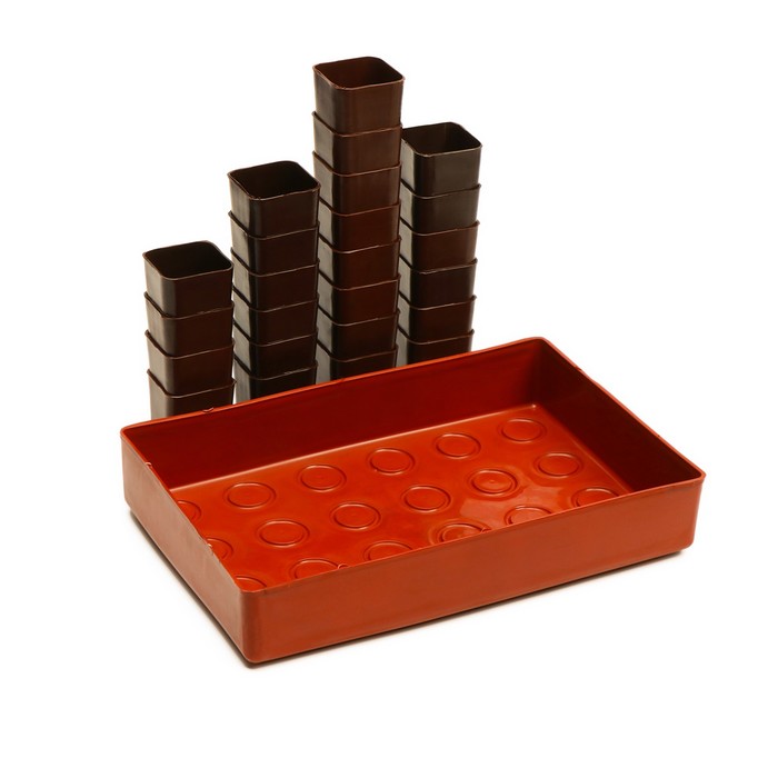 При выращивании в общем ящике корни часто переплетаются и получают недостаточно питания и кислорода. Рассадник на 24 стаканчика создаёт правильные условия. Размер тары подходит для свободного развития корневой системы большинства растений. Пластиковые стаканчики из полипропилена обладают повышенной плотностью и влагостойкостью. Рассадник не токсичен, легко моется, сохраняет форму на солнце, не гниёт, не ломается при падении. Поддон придаёт стаканчикам устойчивость, экономит место, облегчает транспортировку.