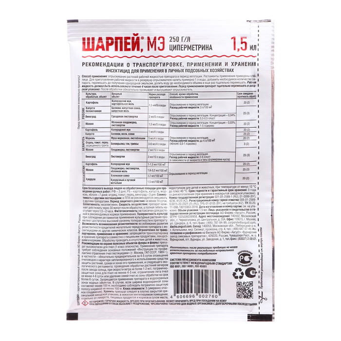 инсектицид контактно-кишечного действия для борьбы с широким спектром вредителей на овощных, плодовых культурах и виноград