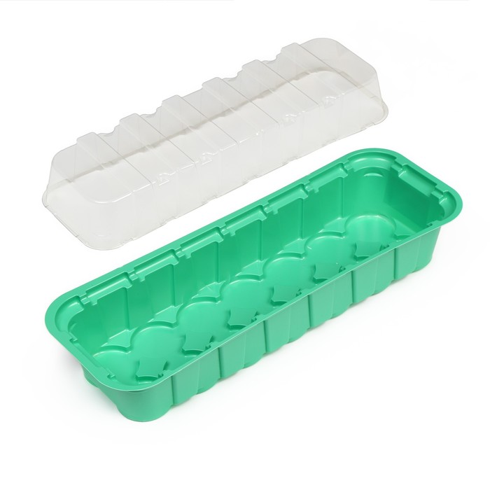 Благодаря прозрачной крышке создаёт парниковый эффект, тем самым сохраняет необходимую влажность и температуру для саженцев.