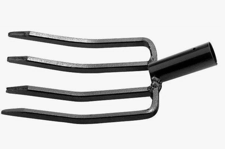 Огородные 4-х-рогие вилы без черенка — универсальный садово-огородный инструмент. С его помощью можно вскопать и разрыхлить землю, сделать проколы в почве для аэрации, провести уборку территории. Некоторые характеристики: высота рабочей части — 270 мм; рукоятка — однокомпонентная; материал рабочей части — среднеуглеродистая сталь; покрытие рабочей части — порошковая эмаль; количество зубьев — 4; диаметр тулейки — 40 мм; профиль зубьев — квадратный; размер зубьев — 10 x 10 мм; цвет рабочей части — чёрный. Преимущества: Прочность и защита от коррозии — вилы выполнены из стали и покрыты порошковой эмалью. Надёжность — благодаря квадратному профилю зубьев вилы выдерживают изгибающие нагрузки при вскапывании грунта. Эффективная работа — зубья с заострёнными концами легко разрыхляют почву.