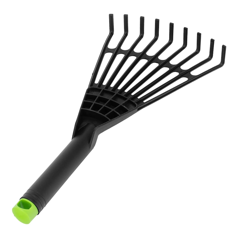 Веерные 9-зубые грабли Palisad NYLON 62395, пластиковые, 175 х 350 мм, используются при проведении мелких садово-огородных работ. Благодаря 9 упругим зубьям с плоским профилем они оптимальны для сбора мелкого мусора и срезанных отростков в цветниках и на грядках.